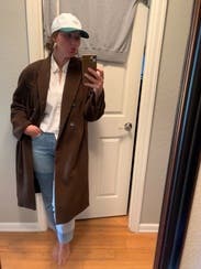 Loved the deep brown color of this coat. It isn’t lined but I was layering, so it worked out just fine.