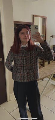 Cute for fall; blazer is unlined so need to wear something smooth under it. Too tight across the chest to wear so I returned witout wearing.
