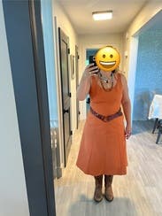 I wore this on hot days and look forward to renting again this fall. Even with the scooped back(which is beautiful) it was a little heavy for a hot summer day. The orange is a great color and the length was perfect. Wore this dress with boots, sneakers, without a belt and layered with sweaters and jackets.