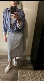 Add a jacket and/or some boots for the perfect fall transition outfit! Can be dressed up or down. I sized down for the perfect fit.