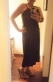 Casual, flowy dress that is easy to dress down or up for a slightly nicer day event. A little tight in the bust, but I have a bigger back and bust than most my size.