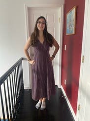 I loved this dress but it didn't quite work with my body type. Fabric and color were really pretty - better than the photos - and it was very loose and comfortable. But the dress fell at an awkward length on me and was too big in the chest/shoulders. I tried taping up the hem and straps but couldn't make it work. Would rent in a heartbeat if they offered a petite version.
