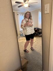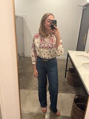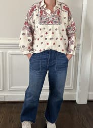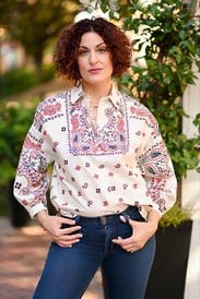 Multicolored (100% Cotton; Embroidery Thread 100% Polyester). Tops. Collared. Long sleeve. Front button closure. Shoulder to hemline length: 27.5". Imported.