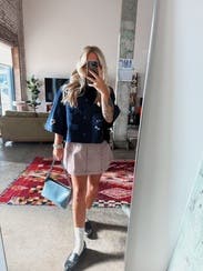 So much style with the different patches. The navy color went with everything and I could pop it on to look polished at a moment’s notice. Would have purchased it if it wasn’t so pricey! Highly recommend!
