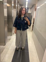Wore this several times during my rental period for casual outings. Receive a ton of compliments. Loved all the various patches which brought colored texture to otherwise pretty simple light shacket .