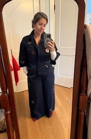 I already rented it twice. Love the color, the patches, stitching. It is a fun wardrobe piece. Combined it also with a Sea New York sweater. I rented an 8 first and that was a fine but preferred the 6 for a less wider/boxy fit. Fun for everyday but also for work.