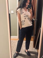 This was super cute for work but it does run big! I had fun styling it in a modern way but the size and big shoulder made it look pretty casual. Size down twice if you’re looking for a more traditional vest fit