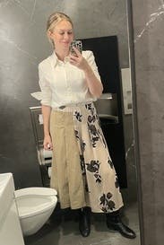I wore this skirt to work with a cardigan over my tank and also running around over the weekend with just the tank. Loved it both ways. It’s super high quality and elevated but still chill and whimsical. Surprising from Max Mara I think! Maybe size up if you’re in between sizes. I would have typically gotten the 4 but it wasn’t available and the 6 fit pretty well.