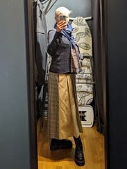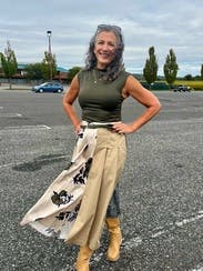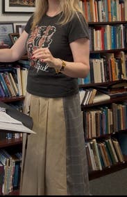 Love this paneled skirt! Elastic waist is forgiving. Love a skirt with pockets. Received many compliments while wearing it, and generally found it could style it in many ways.