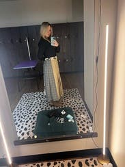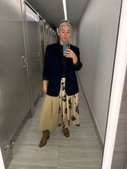 I loved the skirt, but the pockets didn’t lay right on me. I wore a cardigan to cover and it worked out great. I received many compliments and was incredibly comfortable. I loved that this took me from day to night effortlessly.