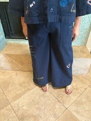 I’m speechless. They’re perfect. They fit perfect. This is rare! The length is just right for my petite frame, the wide legs don’t swallow me, elastic back of the waistband!!!!! High quality fabric! The designs are stitched on.