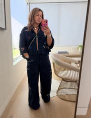 Beautiful fabric and embroidery. Lots of compliments I wish I would've gotten one size smaller. The waistband has some elastic and I think they could've been a little more fitted around my waist when I wore it with a bodysuit. Definitely liked it better with the vest as shown in my photo because it hit the fact that they were a little bit too big.
