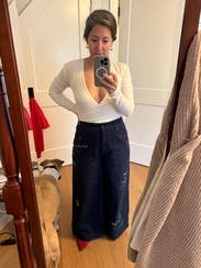 While I like the embroidery and find these pants very charming, I thought the fit was extremely unflattering. I think wide-legged pants look bad on me in general, but these were extra bulky feeling.