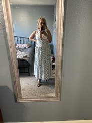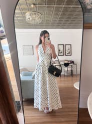 I’m 5’4” and this dress was about 6 inches too long on me for a midi look. It was also really low cut… almost had a nip slip multiple times. That being said, the quality is good, the polka dots are on trend, and it’s a really cute design!