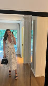 Loveddd this dress and got so many compliments! So flattering with a slightly corseted top. My only note is the plunge neck is quite deep, I ended up pinning it. I would have bought it otherwise, but didn't want to pay to have it sewn up at the chest.