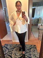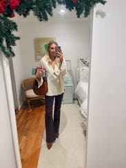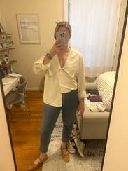 Okay I could have used a steam on this shirt but I was crunched for time and so be it. My friend also had this top at home and we agreed it’s kind of pirate vibes with the wide sleeves, but I still loved it non the less. I preferred it untucked but if I had gone for the smaller size I would have like to try it tucked in as well. This was a win for me! Follow @confessionsofarentaholic for more.