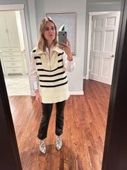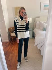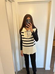what’s black and white and warm all over? you in this where’s waldo inspired striped sweater vest. v oversized so consider sizing down.