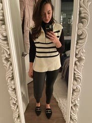 Worked great with leggings but also found it would work with jeans especially if you are carrying and don’t want to wear a longer top or coat.