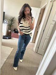 I really liked it, but it’s hard to French tuck because there’s so much fabric. I’ll also need to wear a Cami under it because the opening under the arms is huge. But it’s super cute.