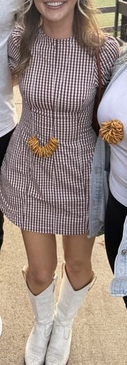 Loved this dress, fit perfectly. Styled with Barbour and some brown boots. Super perfect for a fall tailgate