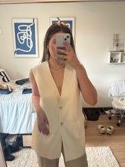 Loved that this was a fun twist on the vest trend. Definitely fits oversized - might need a tank top underneath!