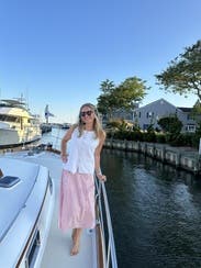 This dress is so pretty with a water back drop. Rent this for anything involving a boat and you’ll be so happy you did. TTS though the middle is unforgiving and tight in the mid section and if you have cleavage the top is a bit revealing!