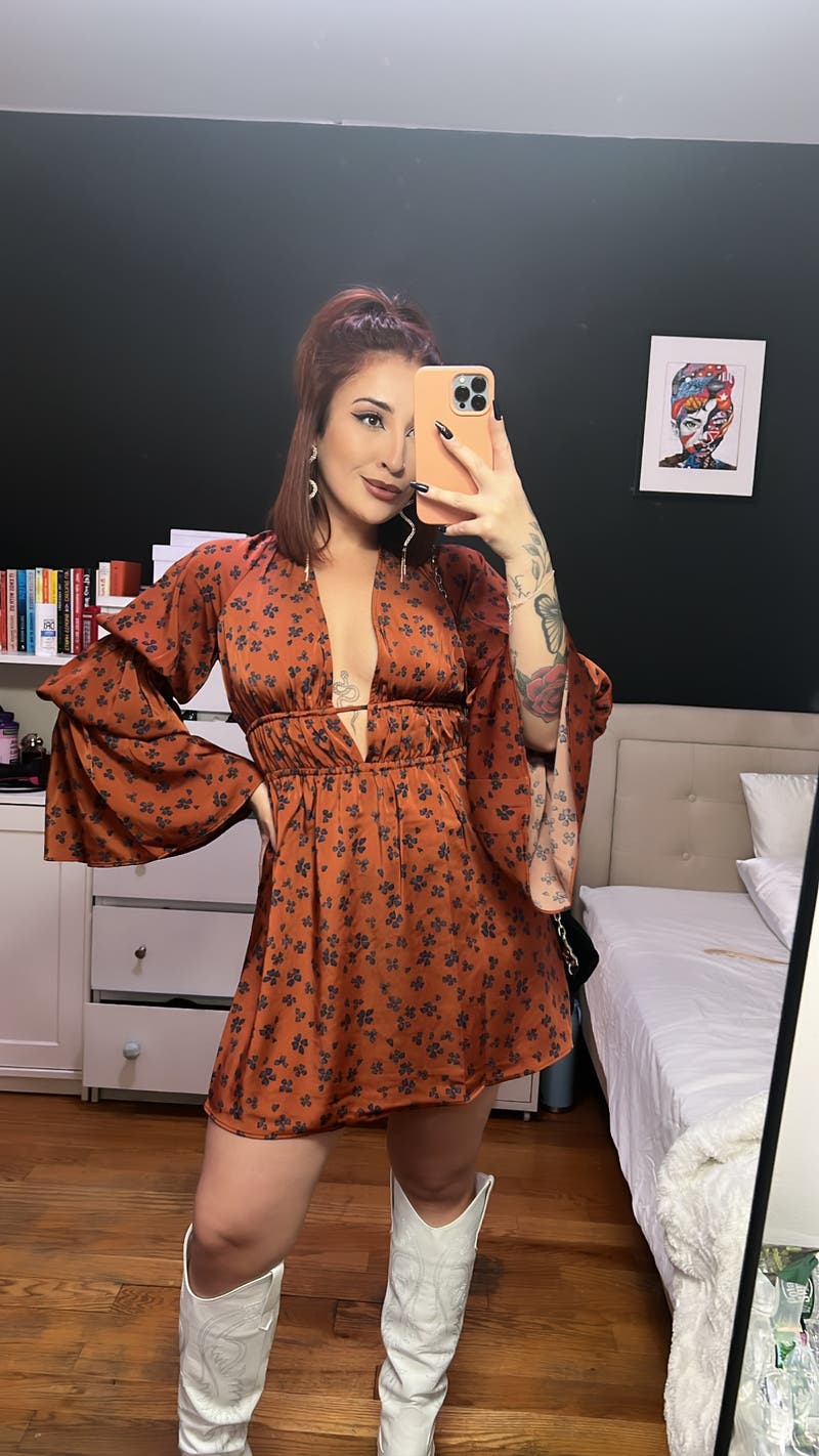 Tiered sleeves give this flowy fall-ready mini by WeWoreWhat a fun bohemian feeling.