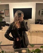 Perfect leather blazer. I’m between 8 & 10 and could’ve sized down.