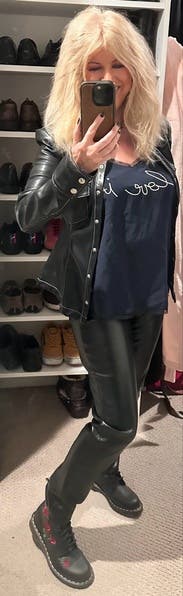 Wore this cute little shirt as a shacket while out running errands on a rainy day in LA. It is very stretchy, but gaped too much when I snapped it up over my breasts. Perfect sleeve and bottom hem length, though. Arrived new with tags.