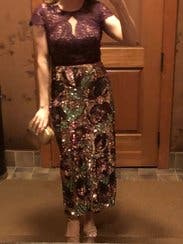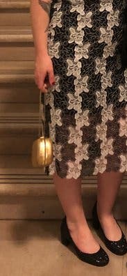 This was my surprise accessory. I was a little bummed to receive a gold accessory as I do not own any gold jewelry, but it matched the dress well and was a change of pace from my typical black formal purse. It fit two iPhones, my lipgloss, mascara, eyeliner and powder. The chain was a nice addition as well. My biggest complaint is the card holder - it was a hassle to put cards in and take them out as well. I stopped using it after an hour.