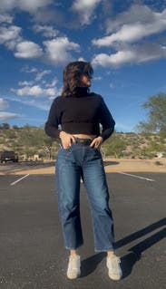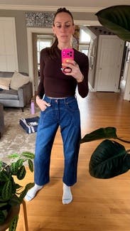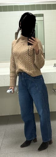 Love the color and fit, but right at the perfect waist and good length for 5’4”. A nice stretch but I’m still in the fence for barrel leg jeans, which is why I gave a 4.