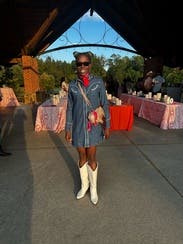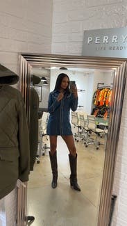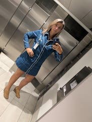 Wore to a western glam night. I wish I had sized down to accentuate curves more. Cute denim piece, lots of compliments
