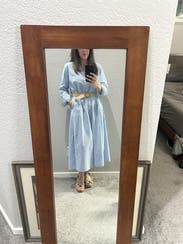 Wore this dress to a baby shower & work - super versatile! Fit is TTS with a bit more room in the midsection which was perfect for my 7 mo bump!