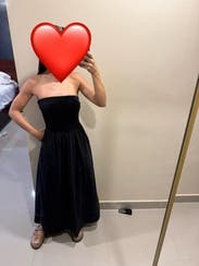 Love this bandeau dress and can be dressed up or down. Stretchy material and flattering. Also has pockets which I love