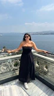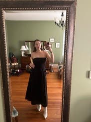 This was my second time renting this dress. I love the fit and pockets. It runs a bit generous but is so easy to wear. The color is a bit muted so don’t expect a crisp true black. Cute to drape a sweater or shawl over!