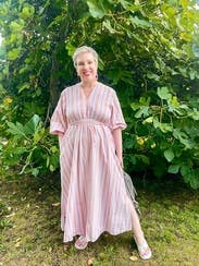 Yes, this dress is breezy and comfortable, but I think it’s only doable if you have a short torso. I don’t have what I would consider a long torso, mine is pretty average, but the ties didn’t hit at my natural waist so it ended up creeping into empire. This gave it a weird shape and it was tight around my ribs. Had it been an inch longer it would have been a good fit. That aside, this piece, especially the colors, are dangerously close to pajama/hospital gown territory. Had high hopes for this one, but wouldn’t rent again.