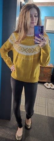 I have never worn yellow in my almost 50 years on this planet but this was a great sweater. Whenever I wore my husband even commented on how much he liked.