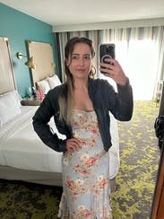 Dress was so pretty. The issue was the L was way too tight and the XL was too big in the chest area and it was wayyy too long I kept tripping on it