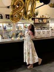 This dress is so beautiful, so feminine and delicate, thinking about getting it! Used for a brunch, I received so many compliments. The only thing that came out a little uncomfortable was the straps but no big deal.