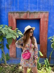 I got this for a pop of color on vacation. I had another nude option but ended up wearing this the whole time. It somehow matched everything and the perfect size to carry all of my vaca essentials (passport, AirPods, cash/cards, sanitizer and lipstick) Perfect as a handbag, shoulder, and crossbody.