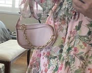 Soft pink crossbody bag. Zipper closure. Adjustable and removable crossbody strap. Removable shoulder strap. 14" x 11" x 4". Imported.