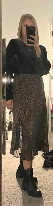 I didn’t think this skirt was anything special. The fit is ok, but it doesn’t flatter anything in anyway. The fabric is a very nice weight and the piece is of very good quality. I gave it 3 stars because I felt they missed the entire point of wearing a leopard print with black lace skirt.