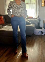 I love the feel of this top. It has a great flow to it. I would like to have it taper a little more at the bottom. I ended up knotting it in the front. Looked cute with boots.