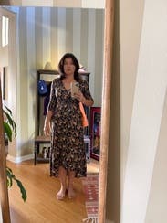 So gorgeous I ended up buying it. Luxe silk and perfect fit.