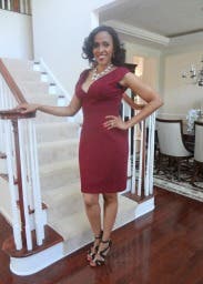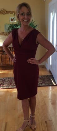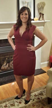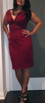 This beautiful Cranberry color dress was beautifully made. The tailoring is impeccable and it was very slimming as well. The cut of the dress is very low, keep that in mind when selecting this dress. But on me, it was just boobaliscious enough. Love this dress...will rent it again!