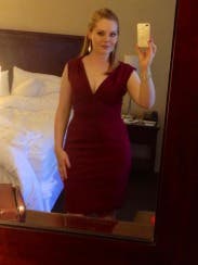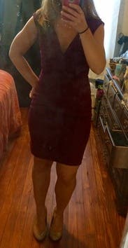 I ended up wearing this dress which was my backup because my first choice dress arrived with a broken zipper. I ended up loving this dress. I wore it to my boyfriend's company holiday party and it was the perfect choice. It has a deep red color and the cut and length of the dress is very flattering. You'll definitely need some fashion tape though because of the deep v neckline. This dress was easy to move in and very comfortable to wear.