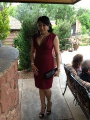I rented this one for my bachelorette party (wine tasting with the girls) and then had dinner out. I got so many compliments from women I didn't even know. It made me truly feel beautiful. The 8 felt great on! I would highly recommend a bra that accommodates a plunging neckline because this one was DEEP. It was also quite warm (granted, we were doing our wine tasting on a hot day!) so I don't recommend this if you're going to be outside in the heat. Being tight, it doesn't off much airflow. I dressed it down for day with wedges and understated small jewelry but it would be really fun with heels and a clutch for a night on the town! Beautiful color and great shape. I would definitely rent it again!