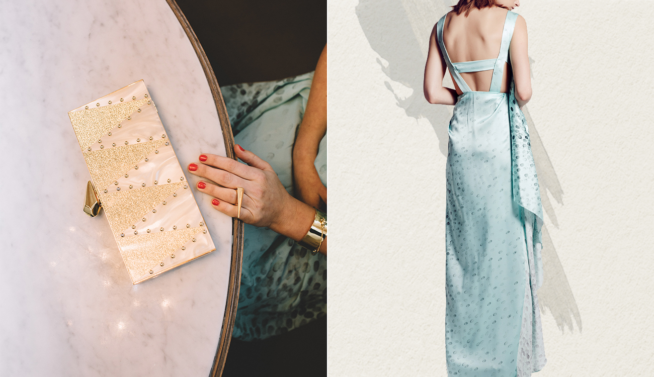 Bag, Kotur; Ring, Nineteen Pieces; Bracelet, Eddie Borgo; Dress, Vionnet
